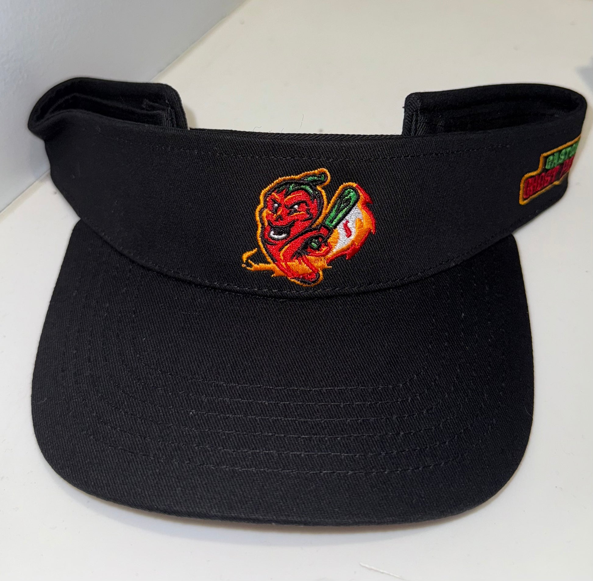 Show off your team pride with the Gastonia Ghost Peppers Black Secondary Logo Visor, now enhanced with the iconic Ghost Peppers wordmark embroidered on the side. This visor combines bold branding with functional design, featuring the team's distinctive secondary logo on the front and the wordmark on the side for added flair. Made from durable materials, it offers a comfortable fit and sun protection, making it perfect for game days, outdoor activities, or casual outings. Whether you're at the ballpark or out on the town, this visor is the perfect accessory to showcase your team spirit in style.
