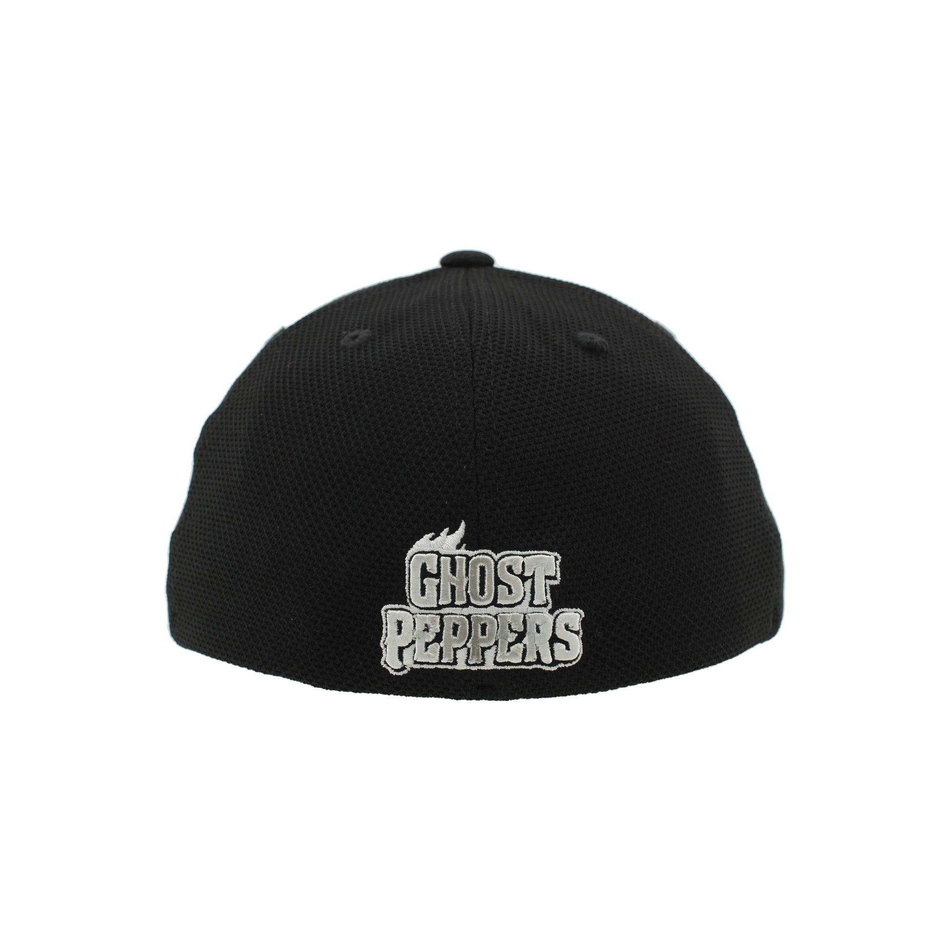 Gastonia Ghost Peppers Black Silver Smash Logo Fitted Hat