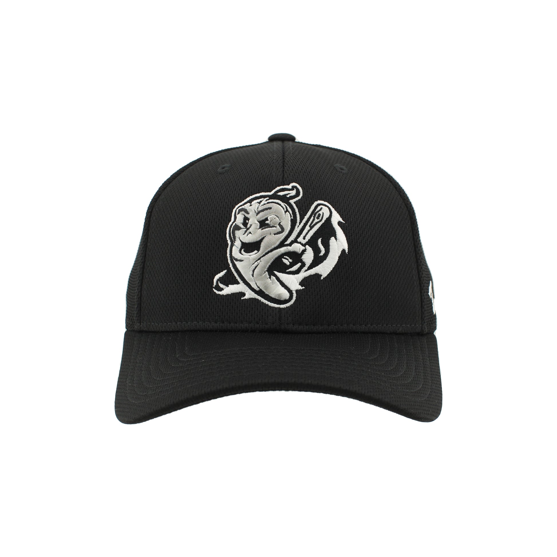 The Gastonia Ghost Peppers Black Silver Smash Logo Fitted Hat is a striking, bold statement piece that combines sleek design with high-impact style. Featuring two of the iconic Ghost Pepper logos, this baseball hat is elevated with a unique reflective silver logo that adds a modern, eye-catching touch. The deep black fabric contrasts beautifully with the metallic accents, making this cap perfect for those who want to stand out.