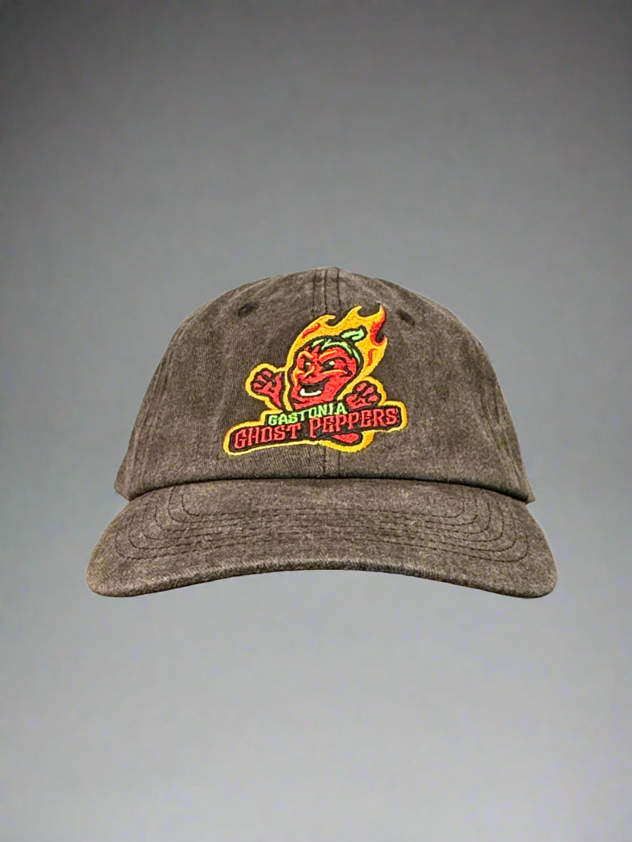 Show your team spirit with the Gastonia Ghost Peppers Primary Washed Black Relaxed Primary LogoHat. Featuring the bold Ghost Peppers logo, this hat combines style and comfort for fans who want to stand out. Whether you're at the ballpark or out on the town, this hat is the perfect accessory to complete your look. Made with high-quality materials, it offers durability and a comfortable fit. Support your team in style with this must-have piece of fan gear.
